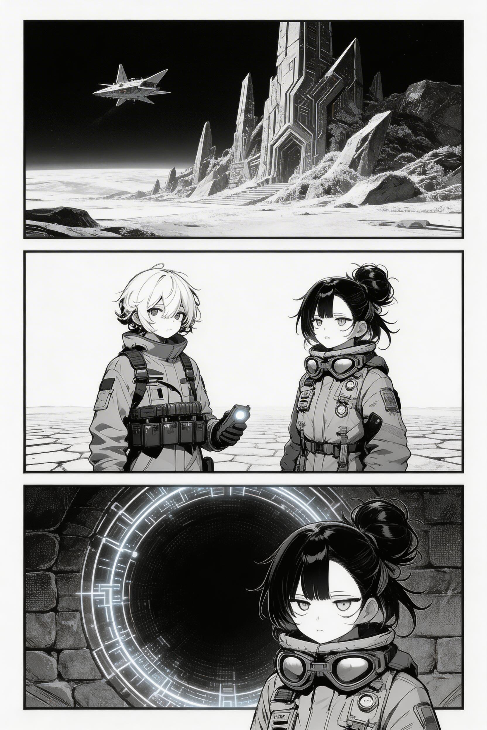 A desperate salvage crew follows a forbidden distress signal to a planet erased from every star map. There they find an immense alien city frozen in perfect silence, as if waiting to wake. When the first lights come back on, the crew learns the city was never abandoned, only hiding from something still coming. Give it a cinematic sci-fi anime style with colossal alien architecture, cold atmospheric light, and a mysterious high-contrast palette.